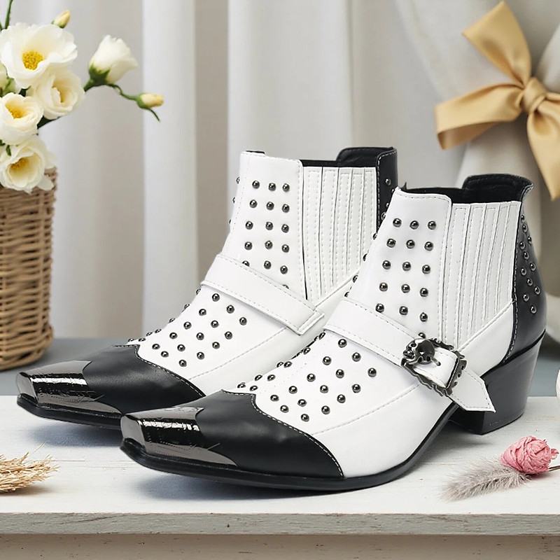 Men's White and Black Faux Leather Ankle Boots with Studded Detailing - Trendy Fashion Footwear for Parties and Casual Night Outs