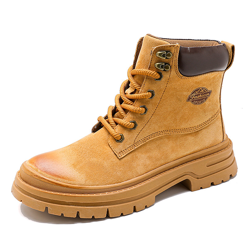 Men's Tan Faux Leather Hiking Boots with Heavy-duty Sole - Strong and Supportive Footwear for Hiking, Camping and Outdoor Activities