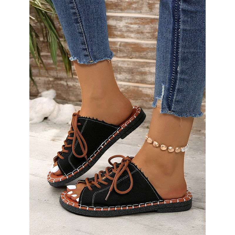 Women's Green Open-Toe Lace-Up Canvas Sandals with Hand-Stitched Sole – Casual and Comfortable for Summer, Travel and Outdoor Activities