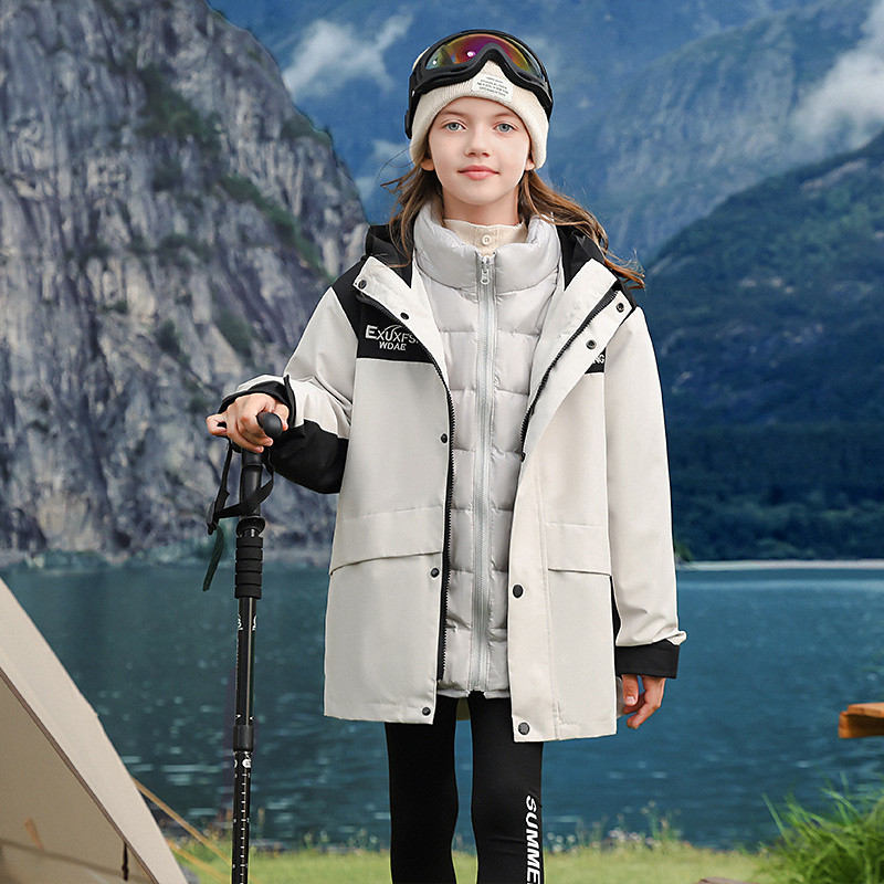 Kids Girls' Down Jacket Hiking Jacket Outdoor Jacket 3 in 1 Jacket Puffer Jacket Color Block Sports Pocket Waterproof Keep Warm Windproof Outdoor Coat Outerwear 5-12 Years Winter Blue Black White