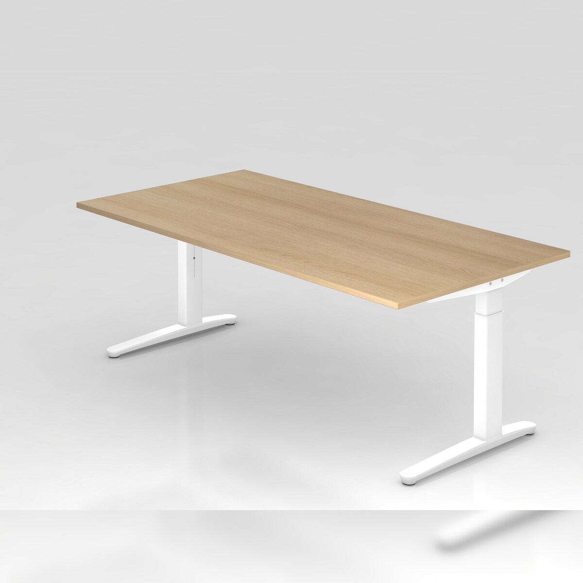 PROREGAL Schreibtisch Mika | Eiche | Weißes Gestell | BxT 200x100cm | Arbeitshöhe 65-85cm | höhenjustierbar, 1cm Raster | C-Fuß-Gestell