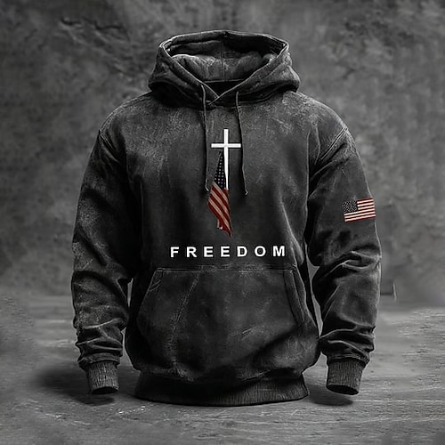 Per uomo Croce Bandiera Americana FREEDOM Felpa con Cappuccio Moda Casual Vintage Retrò Manica Lunga Con Cappuccio Vacanza Feste Abbigliamento casual alla moda Festival Nero Stampa Autunno Inverno