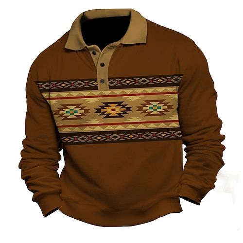 Herren Grafik Polo Langarm Polo-Shirts Hemden mit Kragen Lässig Nationaler Stil Athleisure Alltagskleidung 3D-Druck Frühling Herbst Winter Dunkel Braun
