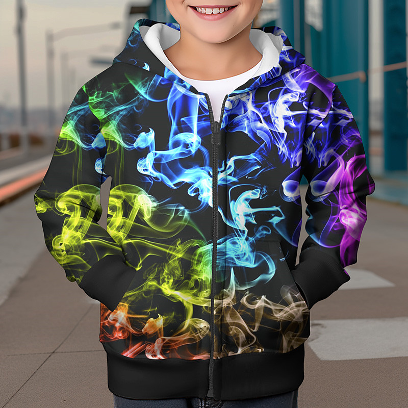 Boys 3D Graphic Hoodie Coat Outerwear Long Sleeve 3D Print Fall Winter Fashion Streetwear Cool Polyester Kids 3-12 Years Zip Hooded Outdoor Casual Daily Regular Fit