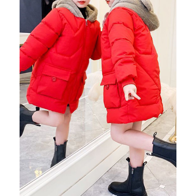 Kids Girls' Down Coat Solid Color Fashion Zipper Pocket School Coat Outerwear 4-12 Years Winter Yellow Pink Red