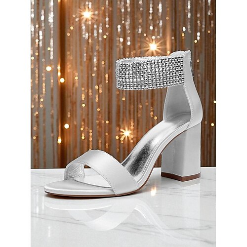 sandali da donna con tacco a blocco in raso viola, eleganti scarpe da sera con punta aperta e cinturino alla caviglia con strass, perfette per matrimoni, balli di fine anno eventi formali di festa