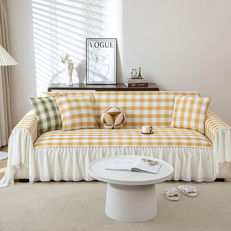 Unprinted Patterned Skirt Edge Sofa Towel, Elegant and Simple Anti-Slip Dustproof Couch Cover, Fashionable Slipcover for 1-4 Cushion Sofas and L-Shaped Sofas, Easy to Install