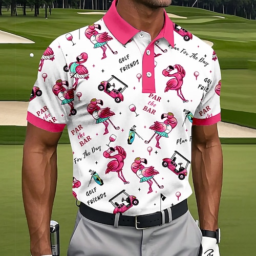 Per uomo Animale Golf Polo Polo Sportivi Manica Corta Magliette polo Camicie con Colletto Casual Athleisure Bottoni Primavera Estate Bianco Rosa