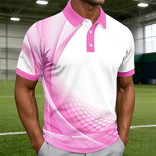 Per uomo Geometrico Linea Polo Sportivi Manica Corta Magliette polo Camicie con Colletto Casual Athleisure Abbigliamento quotidiano Stampa 3D Bottoni Primavera Estate Blu Rosa Viola