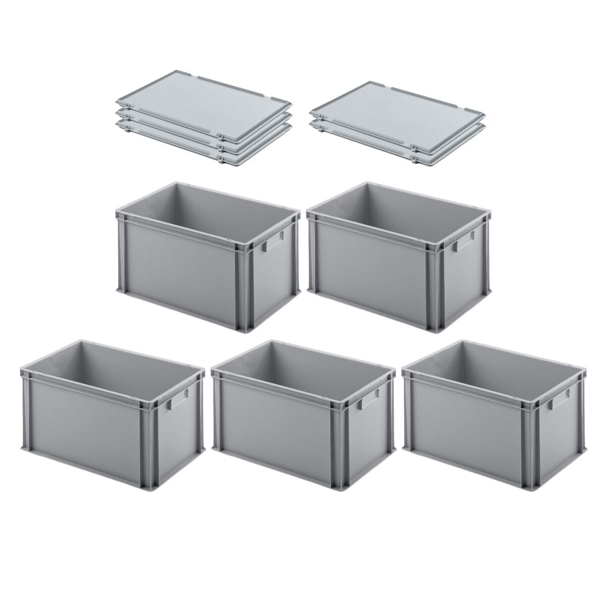 PROREGAL 5x Eurobehälter mit geschlossenem Griff und Scharnierdeckel | HxBxT 32x40x60cm | 56 Liter | Grau | Eurobox