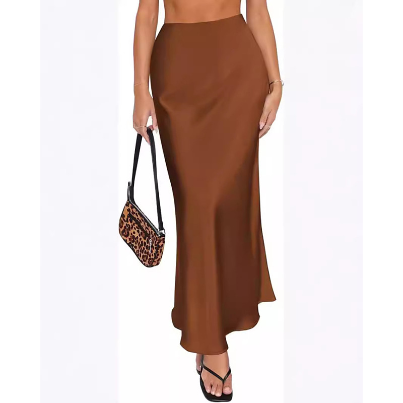 Women's Skirt Trumpet / Mermaid Elegant Fashion Maxi High Waist Skirts Plain Ruched Inelastic Daily Street Black Champagne Army Green Green Summer Satin
