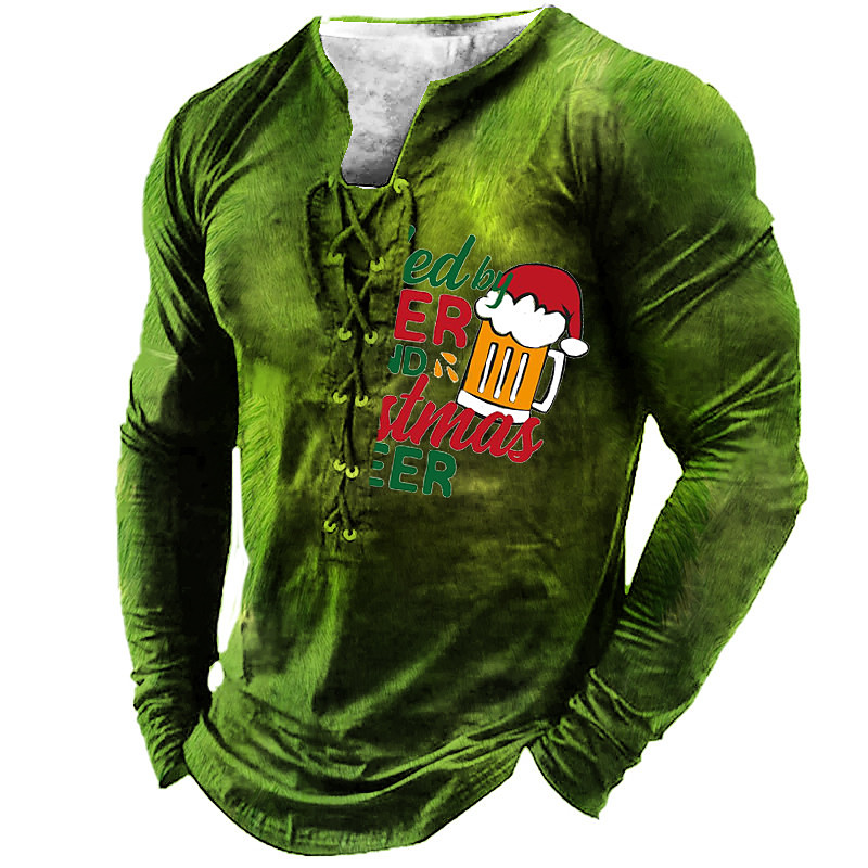 Christmas T Shirt Men's T shirt Tee Tee Graphic Cat Beer Collar Green Dark Green 3D Print Outdoor Christmas Long Sleeve Lace up Print Clothing Apparel Basic Designer Casual
