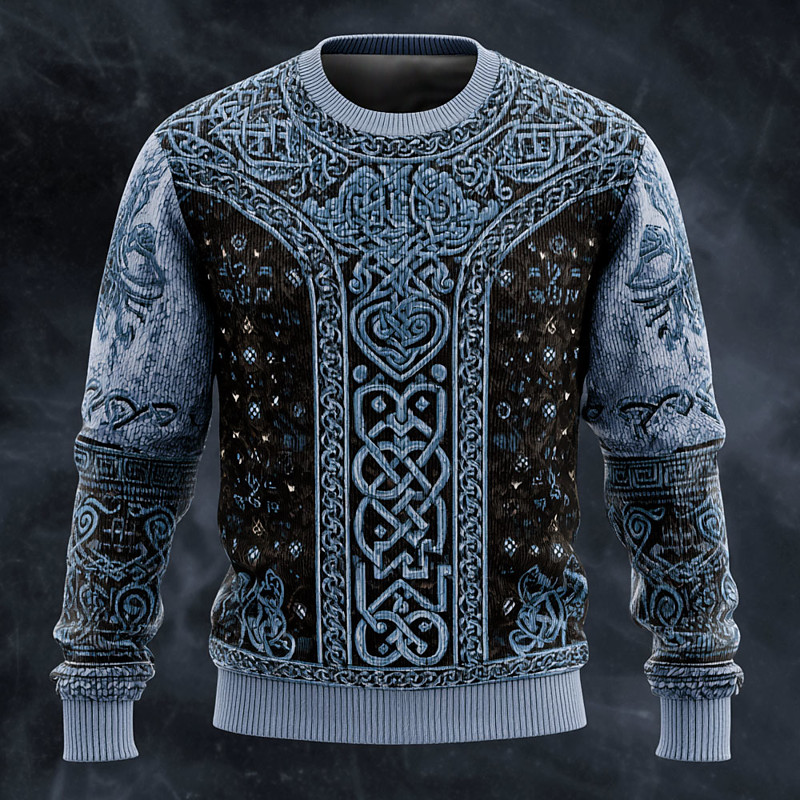 Men's Viking Pullover Sweater Jumper Knitwear Crewneck Retro Vintage Casual Vacation Daily 3D Print Knitting Keep Warm Long Sleeve Spring Fall Winter Blue Brown Green