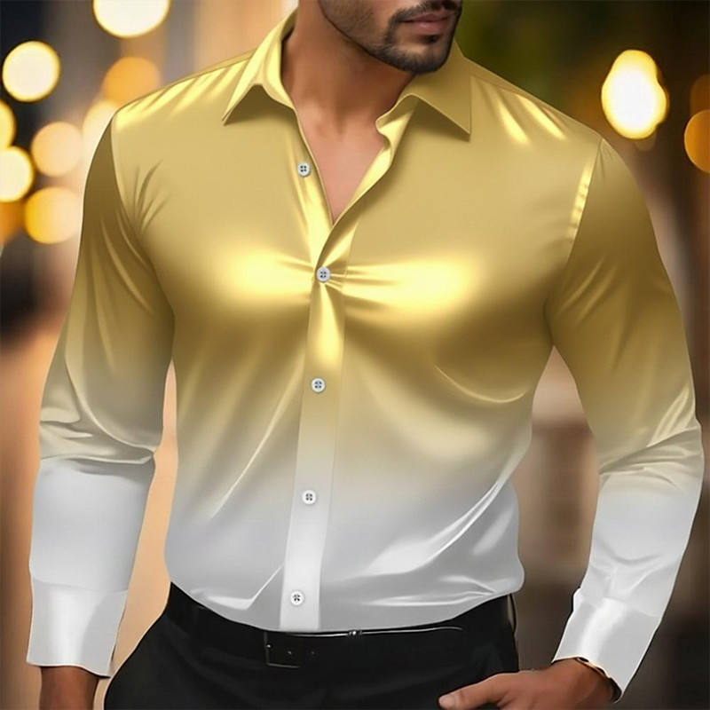Men's Gradient Color Shirt Satin Shirt Dress Shirt Long Sleeve Vintage Retro Vacation Dailywear Summer Spring Fall Turndown 3D Print Button Up Shirts Blue Purple Gold Green Gray