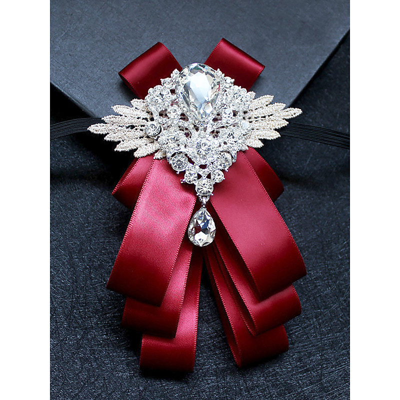 Men's Luxury Crystal Brooch Bow Tie - Elegant Ribbon Pin with Rhinestone Decoration, Formal Wedding and Party Accessories