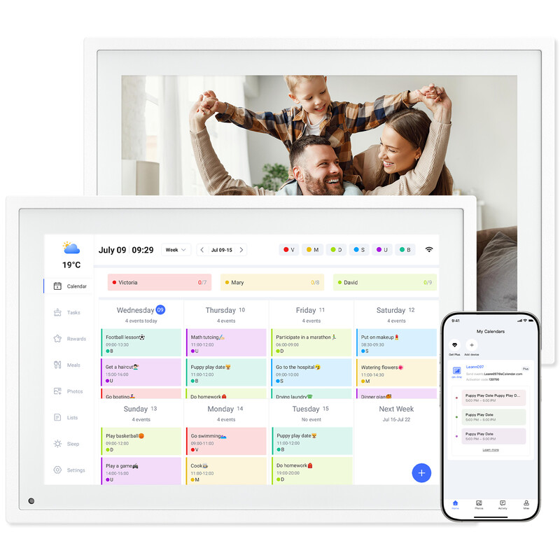 Calendrier Numérique TABWEE P10 WIFI - Cadre Photo Numérique, Tableau de Planification Électronique 10,1" pour Famille et Réunion, Synchronisation Bidirectionnelle des Rendez-vous par Application Mobile, Organisateur Familial, Cadeau pour la Famille/Cadeau de Noël