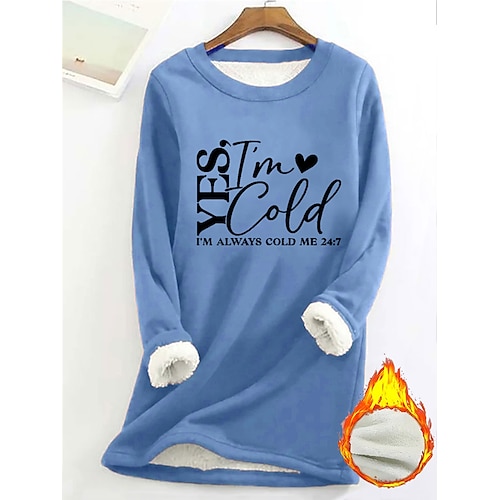 Damen Sweatshirt-Pyjama mit Fleecefutter Pullover Sweatshirt Pullover Sweatshirts Buchstabe Warm Streetwear Lässig Langarm Rundhalsausschnitt Lange Oberteile Heim Alltagskleidung Lässig Druck Schwarz
