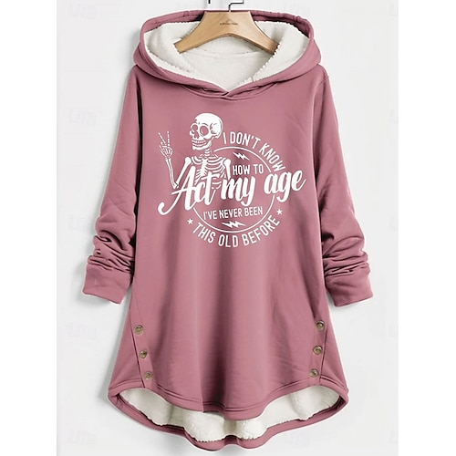 Damen Kapuzenpullover Grafik Buchstabe Warm Lässig Sherpa-Fleece Langarm Mit Kapuze Lange Oberteile Straße Alltagskleidung Lässig Druck Dunkelpink Blau Grau Herbst Winter