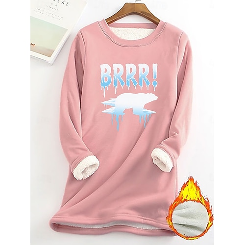 Damen Pullover Sweatshirt Grafik Buchstabe Warm Lässig Flauschig Langarm Rundhalsausschnitt Lange Oberteile Straße Lässig Hellrosa Schwarz Gelb Dunkelpink Rote Herbst Winter