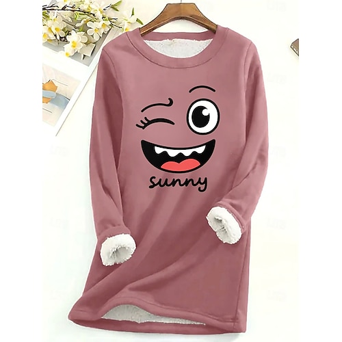 Damen Pullover Sweatshirt Grafik Buchstabe Warm Lässig Flauschig Langarm Rundhalsausschnitt Lange Oberteile Straße Lässig Schwarz Rosa Blau Frühling Herbst Winter