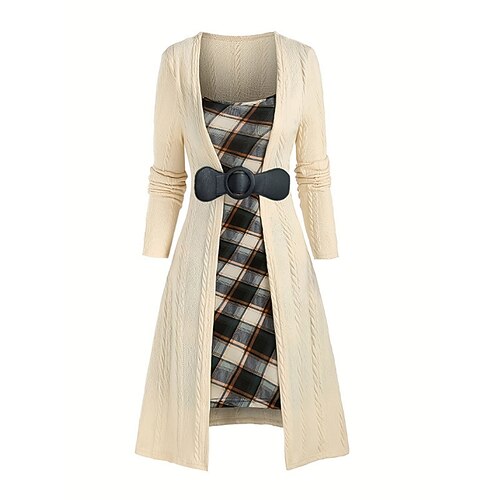 Damen Pullover Pullover Kleid Lässig Weich Einfarbig Gerippt Rundhalsausschnitt Patchwork Gestrickt Druck Langarm Lange Oberteile Stricken Outdoor Täglich Wochenende Schwarz Rote Herbst Winter