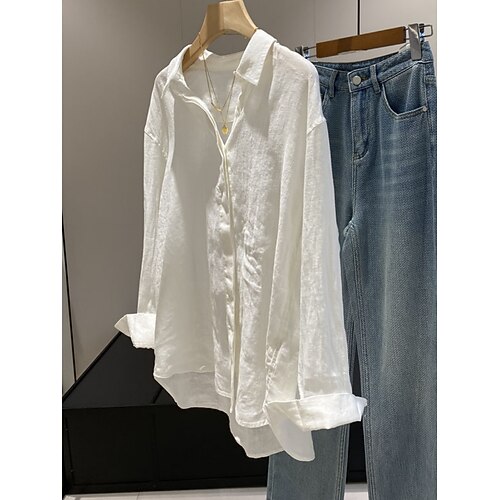 Damen Bluse Einfach Stilvoll Lässig Langarm Hemdkragen Lange Oberteile Täglich Knöpfe Blau Weiß Rosa Königsblau Sommer Frühling