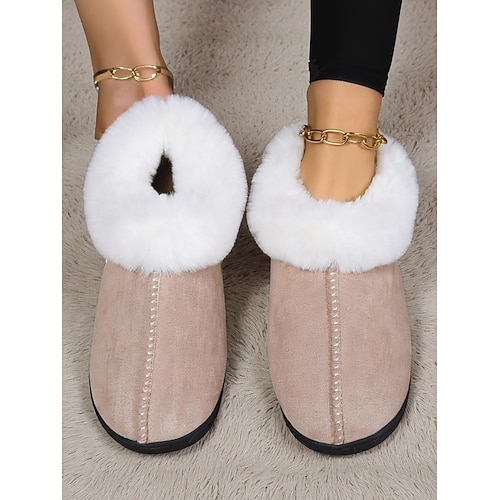 pantofole da donna con fodera in caldo pile e collo in pelliccia sintetica, comode scarpe da interno antiscivolo, eleganti pantofole invernali da donna comfort delle vacanze