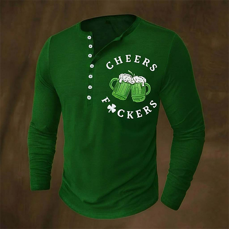 St. Patrick Men's Graphic Shamrock Beer T Shirt Henley Shirt T shirt Tee Tee Top Long Sleeve Shirt Long Sleeve T shirt 3D Print Henley Shirt Fashion Basic Classic Daily Vacation St.Patrick's Day