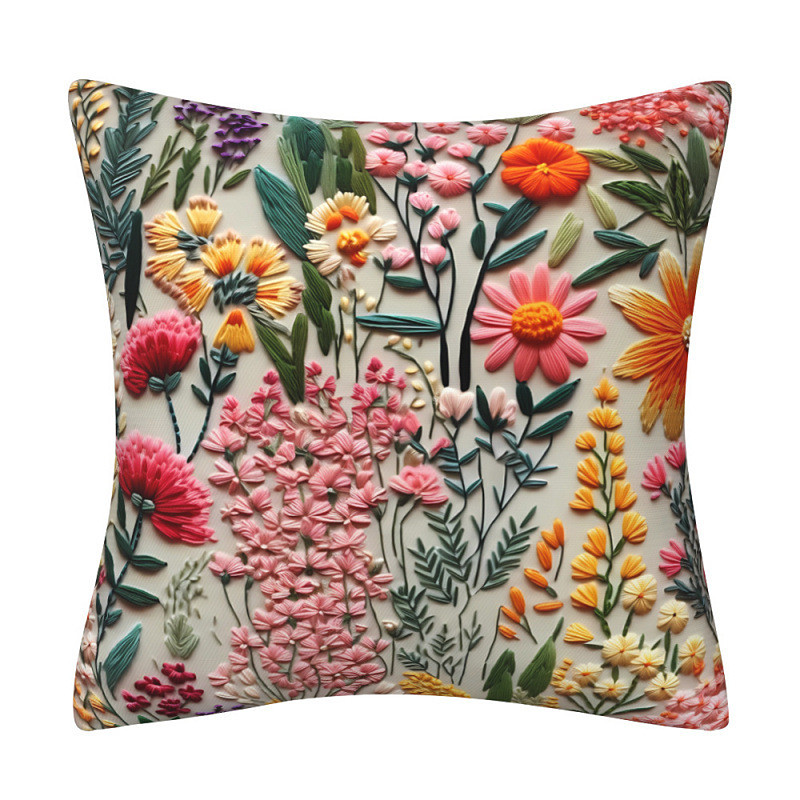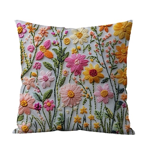 Floral Pillow Cover 2D Flat Print Decorative Cushion Case with Faux embroidery Soft Polyester Fabric for Sofa Bedroom Living Room Home Decor