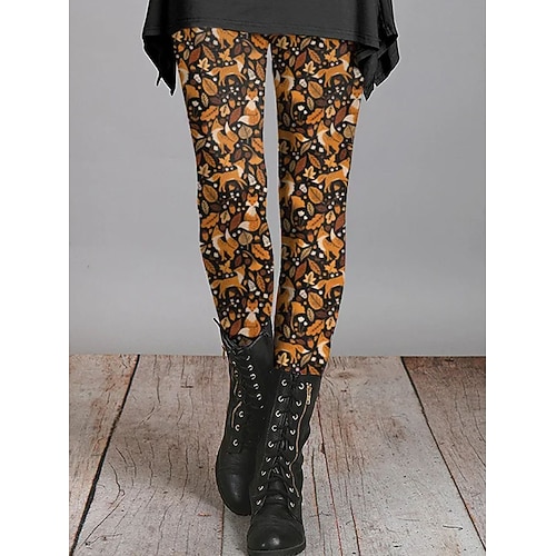 Leggings Donna Vacanza Vintage Stile Etnico Lunghezza Completa Alta Vita Grafica Animale Gatto Stampa 3D Asciugatura Rapida Traspirabilità Morbida Stretchy Esterno Casa Causale Nera Bianca Arancio