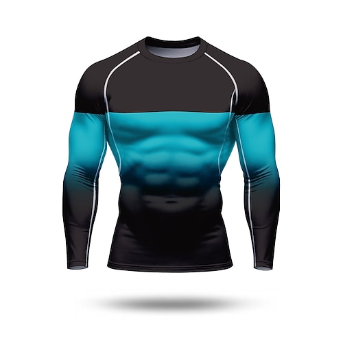 Per uomo Maglia a compressione Maglia da corsa Stampa 3D Blocco di colore Manica Lunga Livello Base Sfumatura Asciugatura Rapida Compressione Elasticizzato Traspirante Allenamento in Palestra