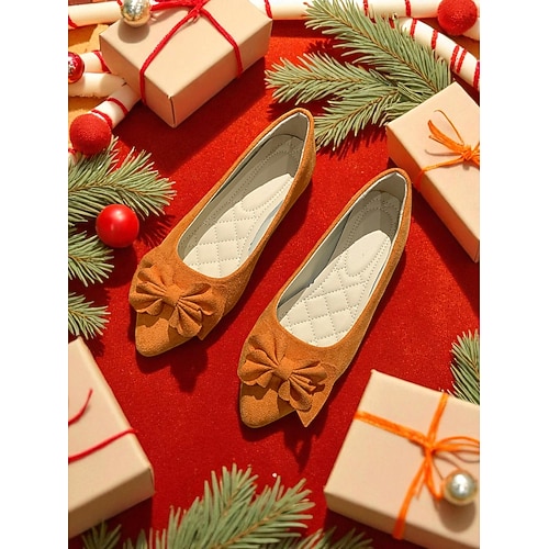 ballerine da donna con fiocco in elegante stile natalizio, perfette per outfit da festa e riunioni festive