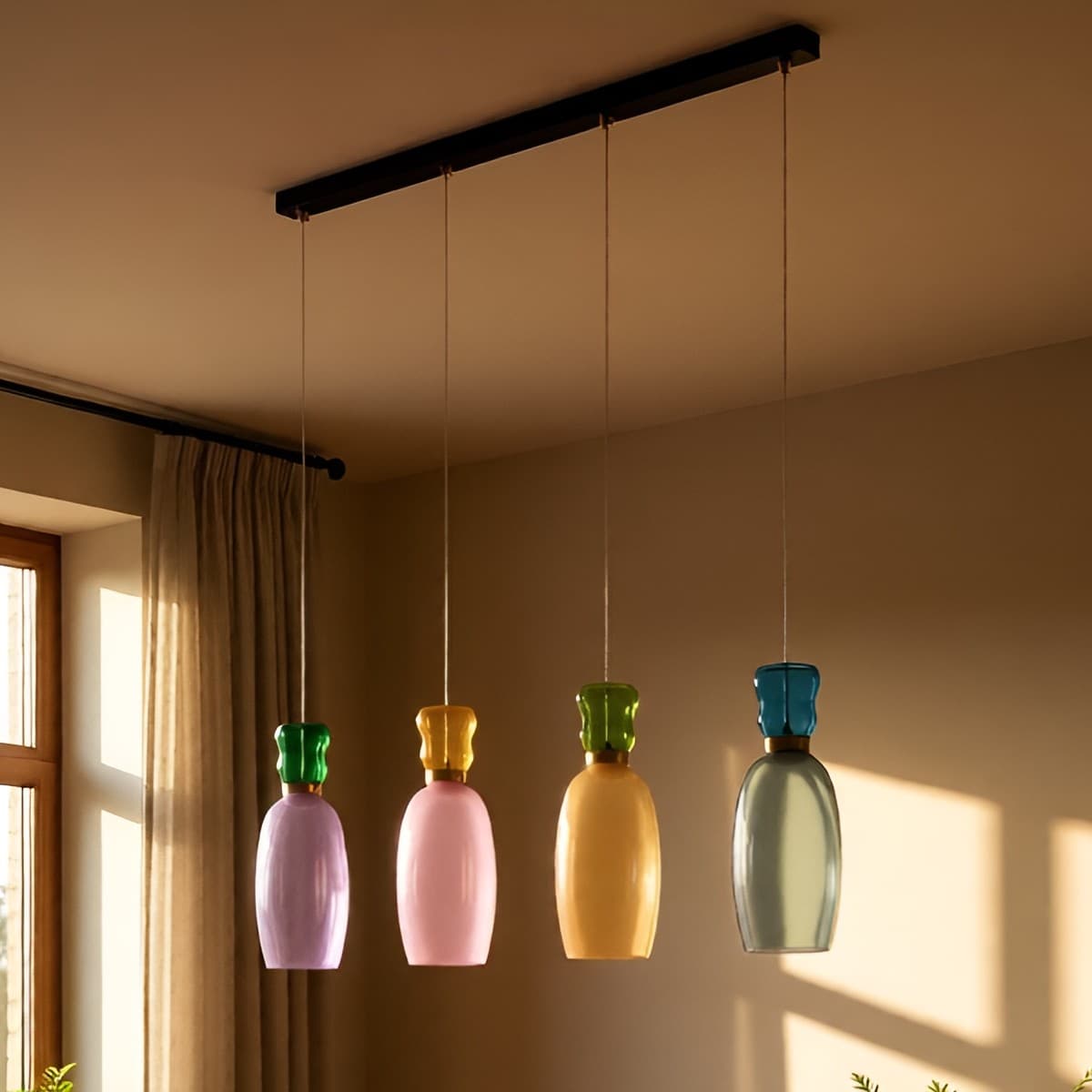 Nova Luce Pluma - lampe suspendue - 96 x 150 x 15 cm - 36W LED inclus - or, jaspe brillant, violet, jaune, rose, vert clair, bleu clair et verre cyan