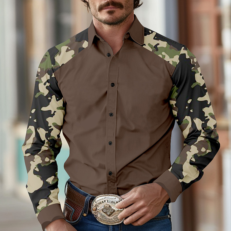 Men's Camouflage Western Shirt Long Sleeve Western Sports Outdoor Spring Fall Turndown Button Up Army Green Blue Brown Gray