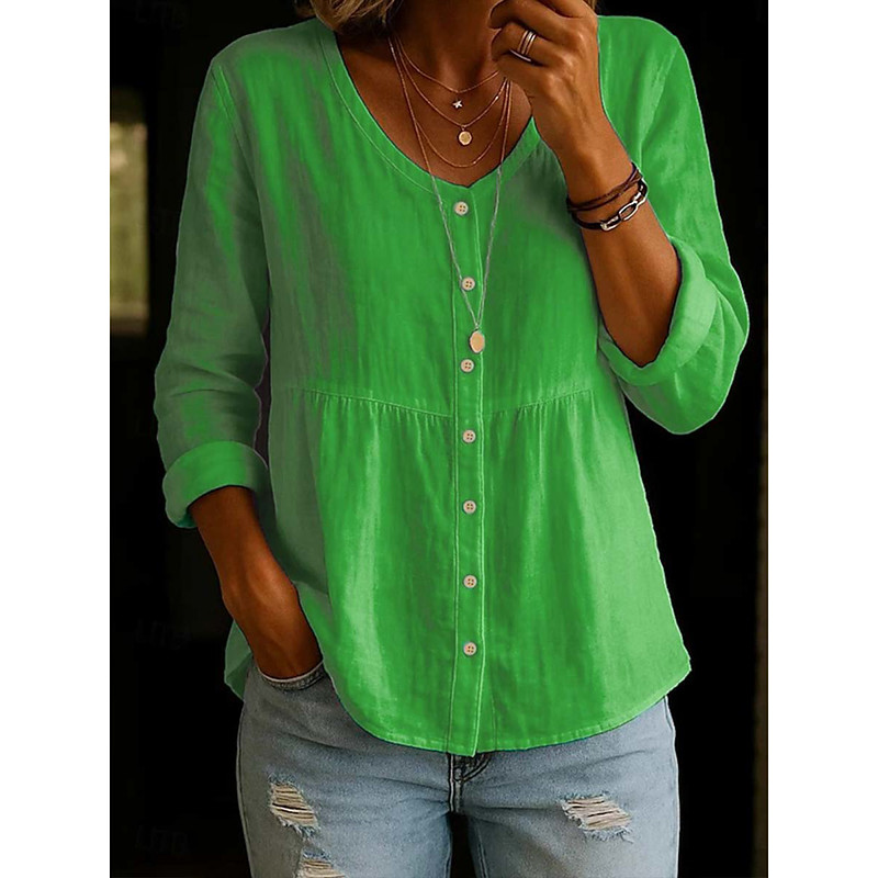 Women's Blouse Solid Color Stylish Casual 3/4 Length Sleeve V Neck Regular Tops Daily Buttons Blue White Pink Summer Spring