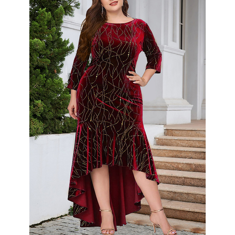 Women's Plus Size Velvet Dress Graphic Crew Neck Long Sleeve Spring Fall Elegant Fashion Modern Maxi long Dress Formal Christmas Dress