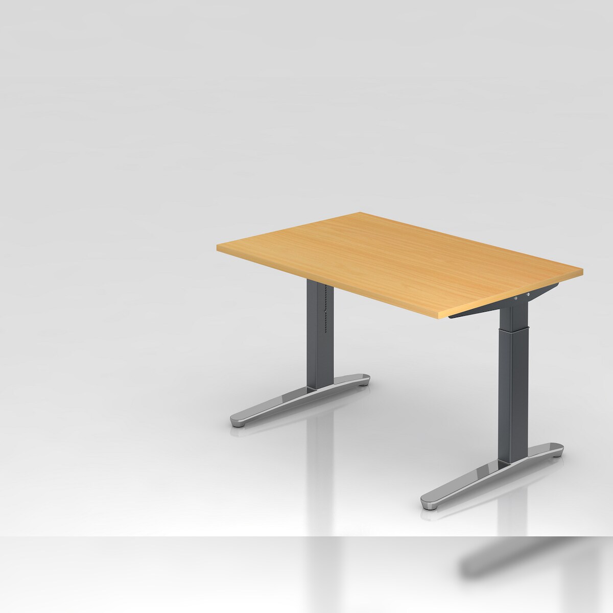 PROREGAL Schreibtisch Mika | Buche | Graues Gestell poliert | BxT 120x80cm | Arbeitshöhe 65-85cm | höhenjustierbar, 1cm Raster | C-Fuß-Gestell