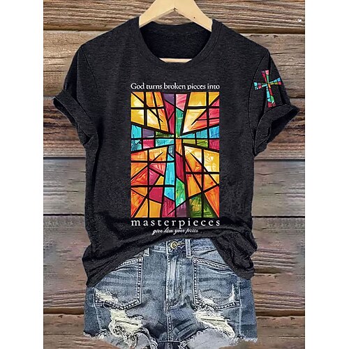 Per donna Maglietta Grafico Geometrico Lettera Vintage Moda Elegante Manica Corta Girocollo Top Regolari Quotidiano Weekend Stampato Blu Nero Bianco Rosa Arancione Estate Primavera Autunno Inverno