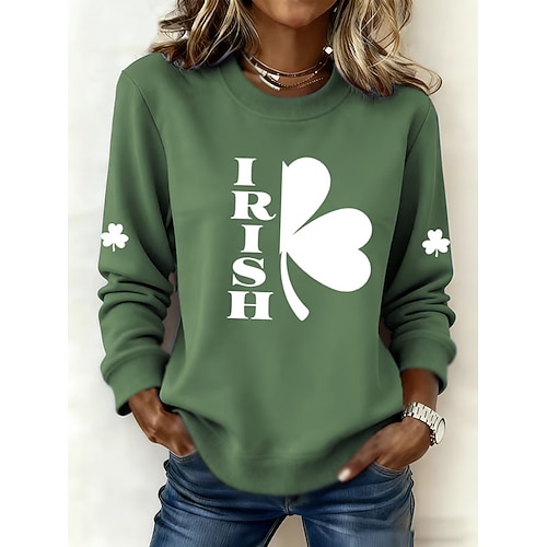 Per donna Felpa Pullover Felpe con cappuccio Grafico Trifoglio Moda Casual Manica Lunga Girocollo Top Regolari Streetwear Abbigliamento Quotidiano Stampato Grigio verde Nero Bianco Verde Primavera