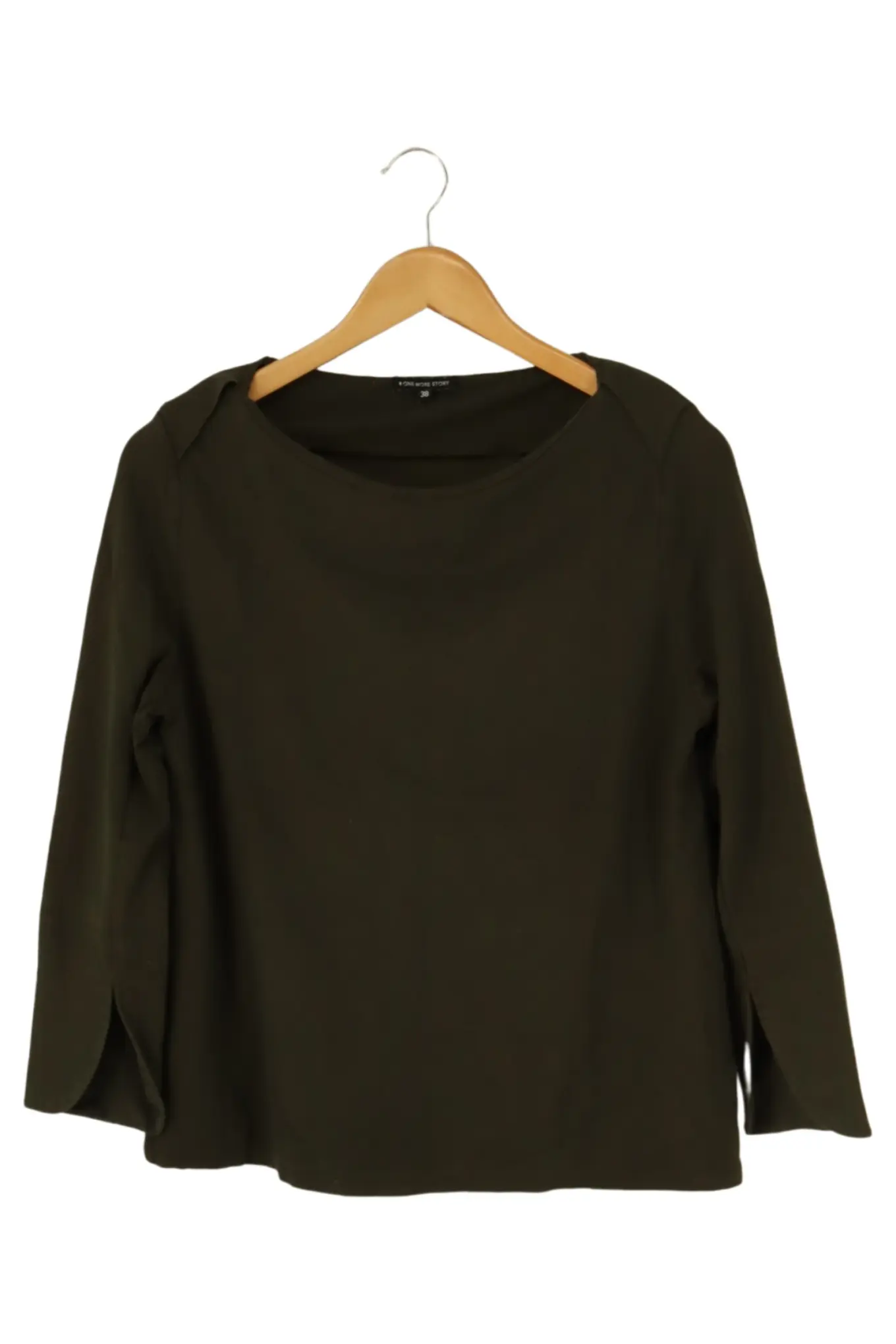 ONE MORE STORY Langarmshirt Damen Gr. 38 Oliv Casual Look