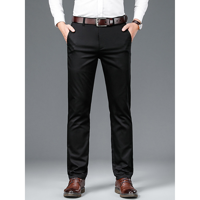 Men's Dress Pants Trousers Chinos Buttons Pocket Plain Comfort Formal Party Work Fashion Classic Style Black Yellow Micro-elastic