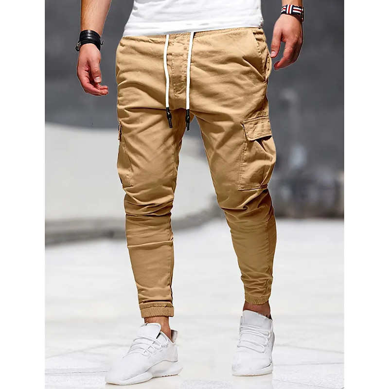 Men's Cargo Pants Joggers Trousers Drawstring Elastic Waist Multi Pocket Plain Wearable Outdoor Daily Camping Hiking Fashion Classic Black Army Green