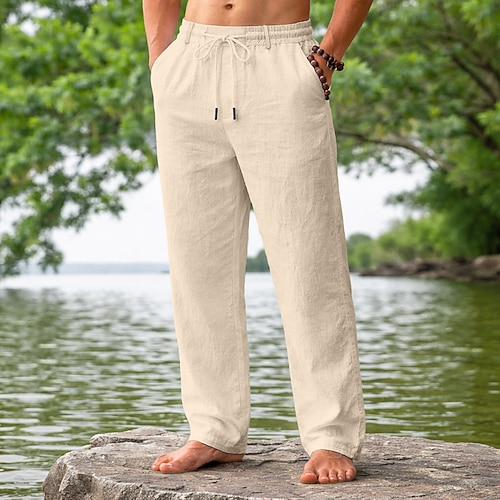 Per uomo Pantaloni di Lino Pantaloni Pantaloni Estivi Coulisse Tasca Semplice Comodità Leggero Lunghezza intera Yoga Casuale Quotidiano Essenziale Liscio Vestibilità comoda Nero Bianco Micro-elastico