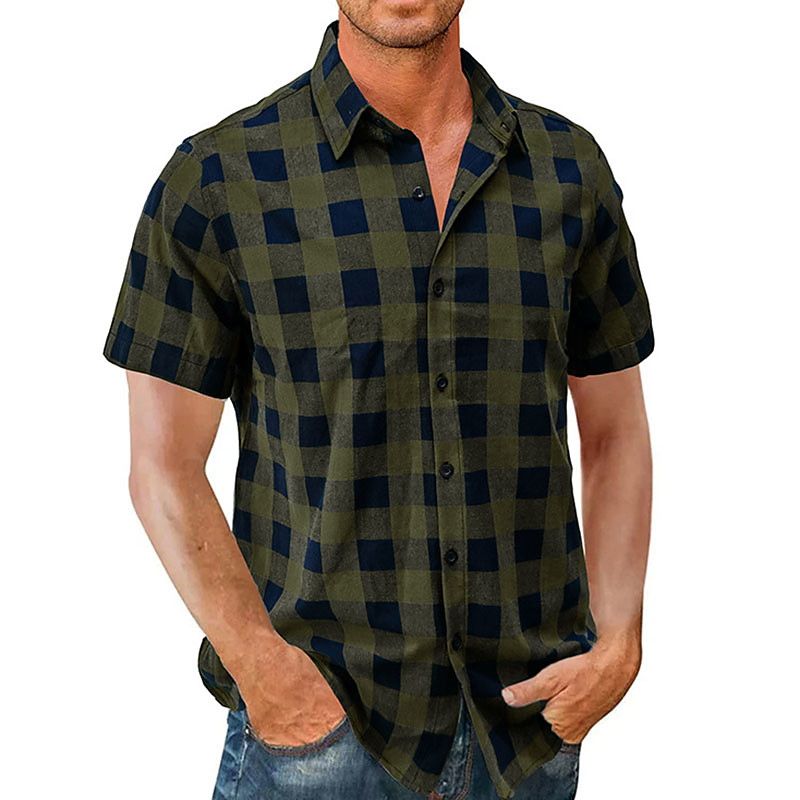 Men's Shirt Summer Shirt Casual Shirt Button Up Shirt Checked Shirts Blue Black Pink Red Dark Green Short Sleeve Plaid Lapel Vacation Street Print Clothing Apparel Fashion Leisure Hawaiian