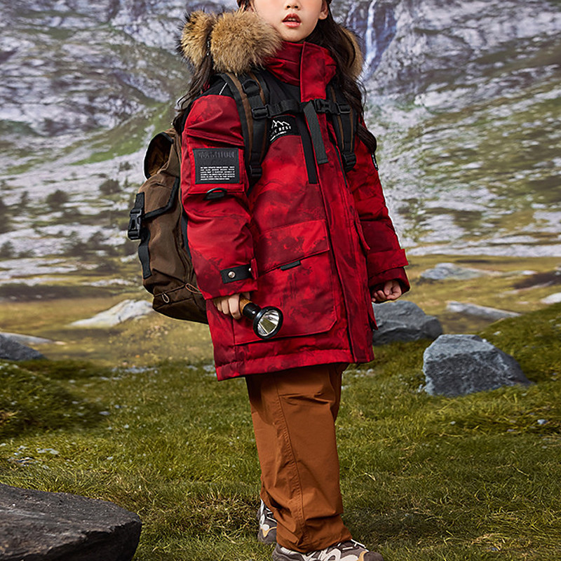 Kids Unisex Down Jacket Outdoor Jacket Outerwear Solid Color Camo Long Sleeve Pocket Keep Warm Windproof Coat Outdoor Daily Basic Black Red Orange Winter 5 years