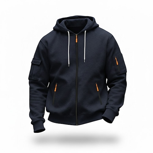 Per uomo Felpa con cappuccio Felpa con cappuccio a zip intera Felpa con cappuccio in pile Nero Blu marino Cammello Grigio chiaro Grigio scuro Con Cappuccio Semplice Patchwork Sport Outdoor