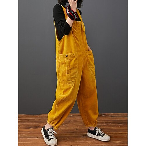 Per donna Normale Tuta Attivo Tinta unica Senza Maniche Harem Tasca Vacanza Quotidiano Vestibilità comoda Nero Giallo Rosso Primavera