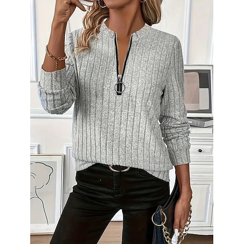 Per donna Blusa Tinta unica Elegante Casual Manica Lunga Girocollo Top Regolari Quotidiano Cerniera Nero Bianco Vino Verde militare Blu Primavera Autunno Inverno