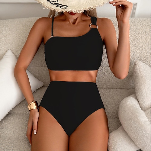 Per donna Costumi da bagno Bikini Due pezzi Birichino Costume da bagno Snello Senza schiena Vacanza Moda Tinta unica All'americana Senza Maniche Costumi da bagno