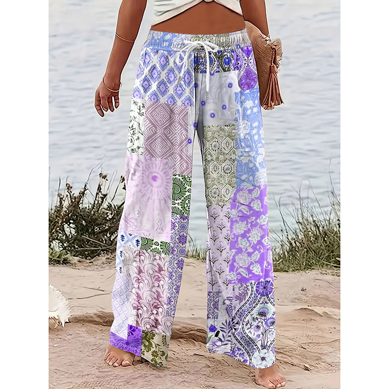 Women's Wide Leg Chinos Baggy Pants Vacation Vintage Fashion Full Length High Waist Graphic Geometric Paisley Printing Micro-elastic Formal Vacation Street Pink Blue Purple Green Summer Spring